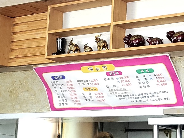 생각보다 메뉴도 다양합니다. 저희 부부는 짬뽕과, 짜장면을 기본으로 주문했고, 섬이라 다소 금액이 육지와 큰 차이가 없습니다. 아무래도 섬이니깐요. 탕수육이 그렇게 맛있다고 해서 주문하려 했더니 다 못 먹을 거라는 남편 말에 침만 삼켰습니다.