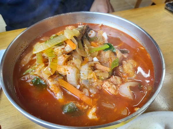 짬뽕에는 야채가 그득했고, 해산물도 많았습니다. 그중에 달마새우라는 큰 새우가 한 마리 떡하니 있고요. 녹진한 국물맛이 아닌 깔끔한 국물입니다. 짬뽕이지만 담백한 국물로 인해 개운하다는 느낌도 났습니다. 남편말로는 짬뽕 느낌보다 탕 느낌이 더 강했다고 했습니다. 기본적인 감칠맛이 있어 호불호 없이 모두 좋아할 맛입니다. 달마새우 맛은 기억 안 나지만 처음 들어보는 새우 이름이라 생소했는데 여하튼 새우는 사랑이고 맛있는 식재료 중 하나니 꼭 드셔보시길 추천드립니다.