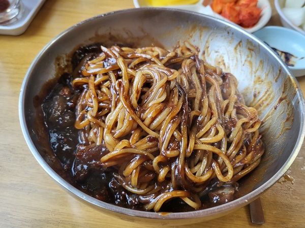 짜장면도 평균하는 맛입니다. 집근처 중국집에서 시키면 오는 짜장면 맛과 크게 차이 없습니다. 특별할 건 없다는 거죠. 하지만 그 기본맛이 중독이고 맛이죠. 평균하는 맛이라 모두 좋아할 맛입니다. 차이라면 어찌 됐든 매장에서 먹으니 금방 나온 음식이라 따뜻해서 조금 더 맛 좋게 느껴지는 정도입니다. 매콤하게 먹는 걸 좋아해서 고춧가루 뿌려 먹었습니다. 맛굿!