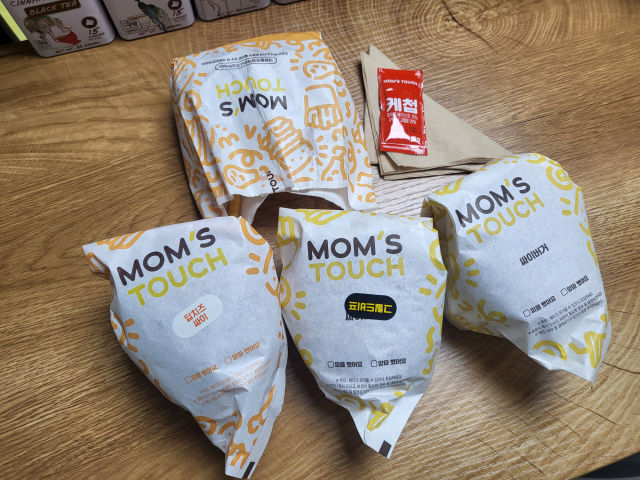 - 맘스터치 주문품목: 싸이버거, 딥치즈싸이버거, 그릴드비프버거, 케이준양념감자