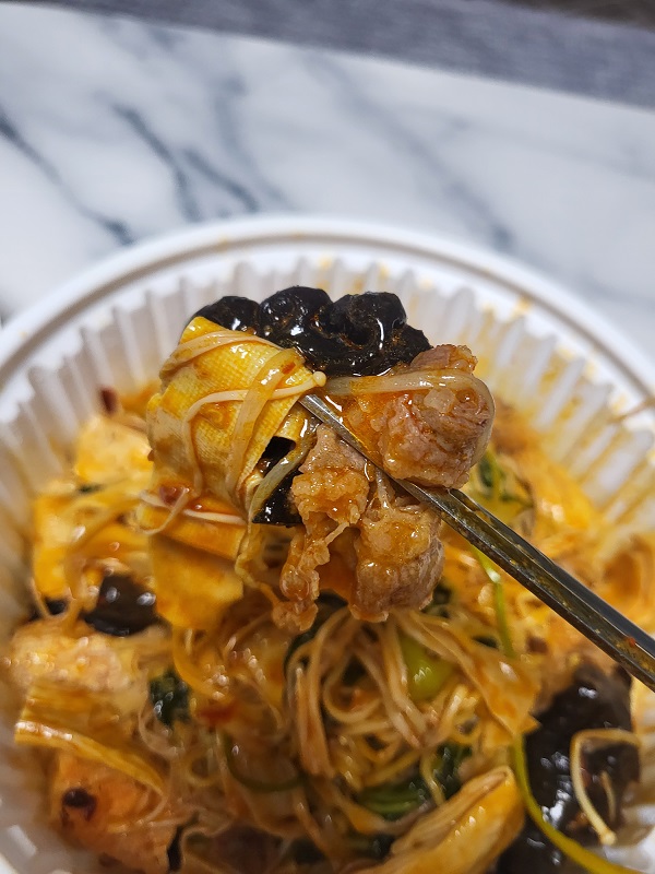맛있습니다. 기본 하는 맛이었습니다. 기대를 많이 했어서 그런지 또 시켜 먹어야지 하는 맛 까진 아니었습니다. 제 입맛에는 말이죠. 매운맛을 6단계로 선택했지만 제 입에 엄청 맵거나 화하진 않았습니다. 그렇다고 맛이 없는 건 아니고 평범한 맛이었다고 할 것 같아요. 추가한 땅콩소스가 정말 진해서 찍어 먹으면 고소한 맛과 샹궈의 화함과 매콤함이 어우러져 그럼에도 충분히 맛있게 먹었습니다.