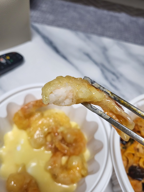 그리고 정말 많이 기대했던 크림 통새우 꿔바로우 미니! 맛있습니다! 달달한 크림맛이 정말 진하고 새우 자체가 너무 통실하고 크기가 커서 혼자 다 먹기에 미니도 많더라고요. 새우가 크고 통통하니 씹는 맛도 좋고요. 크림소스 양도 많아서 제대로 달달한 크림맛을 느끼기 좋았습니다.